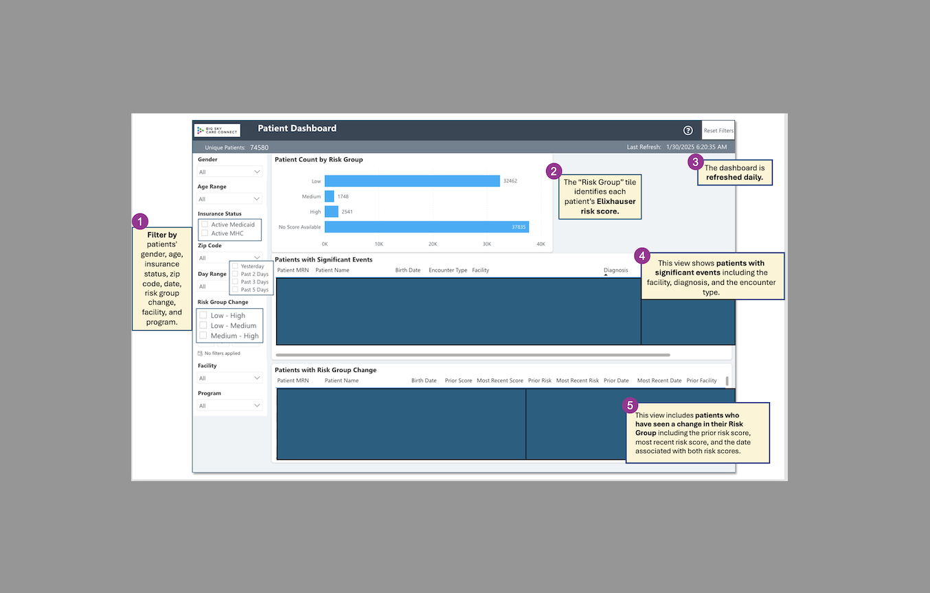 BSCC’s patient dashboards empower healthcare organizations with real-time, data-driven insights to enhance care coordination and target outreach for at-risk populations.